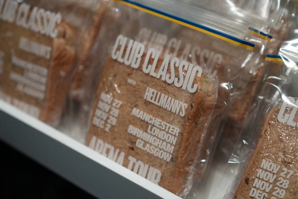The idea was to turn a piece of internet culture into a physical design object. A banned sandwich bag from Charli xcx’s poster was recreated as a limited-edition Hellmann’s ‘Club Classic’ sandwich bag, designed to feel almost identical to the original and filled with a freshly made Club Classic sandwich — a playful nod to the track.